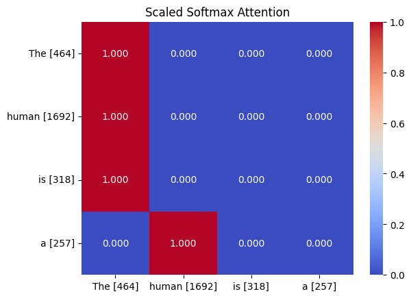 In my research to understand this concept, I came across this post from Jinoo Baek that was very helpful in understanding the concept of attention masking. In their post, they show their simple handwritten notes of the attention mechanism for a very simple model with only two words and an embedding size of 3. Specifically their handwritten notes written within attention calculations helped my intuition. In my post, I attempt to take these notes a step further by coding simple examples to help my understanding.