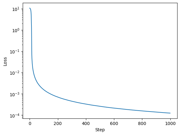 1000 steps is a bit overkill, however it is a simple model and it trains very quickly. Here is the loss curve.