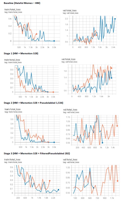 Throughout the process, we iteratively refined the inclusion of pseudo-labeled memes based on analysis and domain knowledge. However, we discovered that incorporating model-selected pseudo-labeled memes did not improve the performance metrics as expected.
