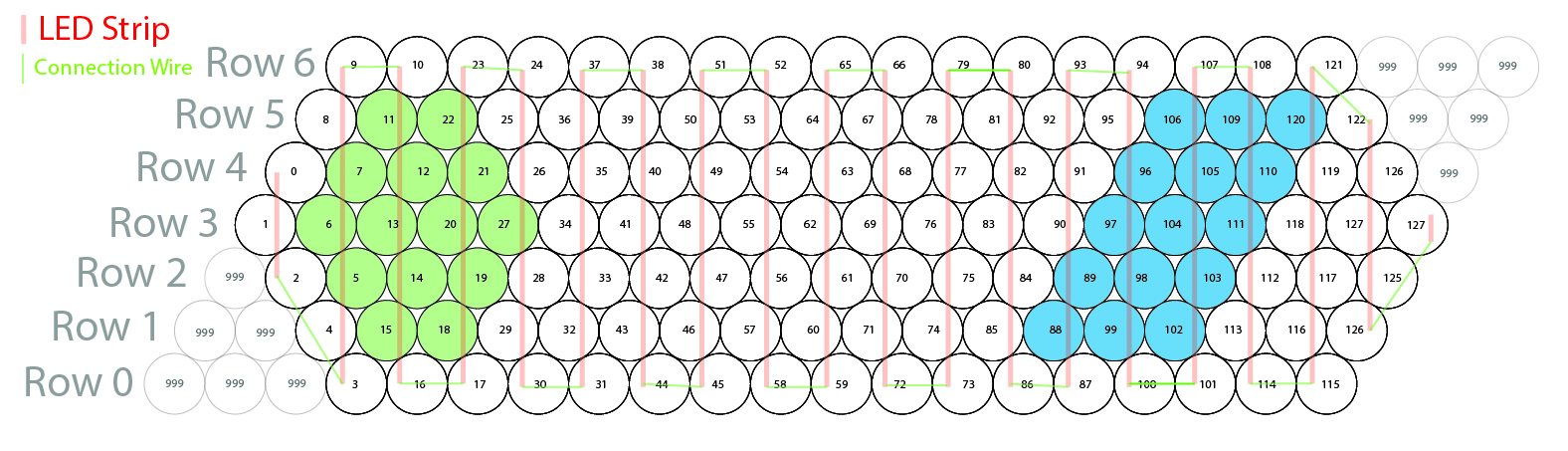 The layout of the LED strips called for a font libraries and character writing functions to be written from scratch. The only code reutilized from previous projects were those that drove single LED illumination.